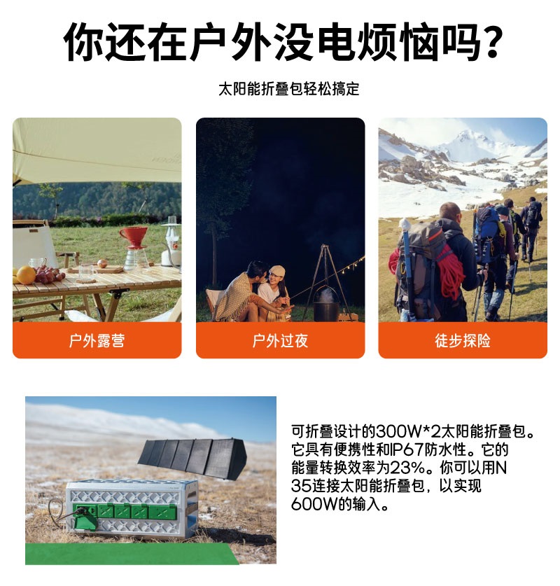 太陽能板600瓦大功率便攜折疊包配1800W戶外極寒天氣儲能移動電源